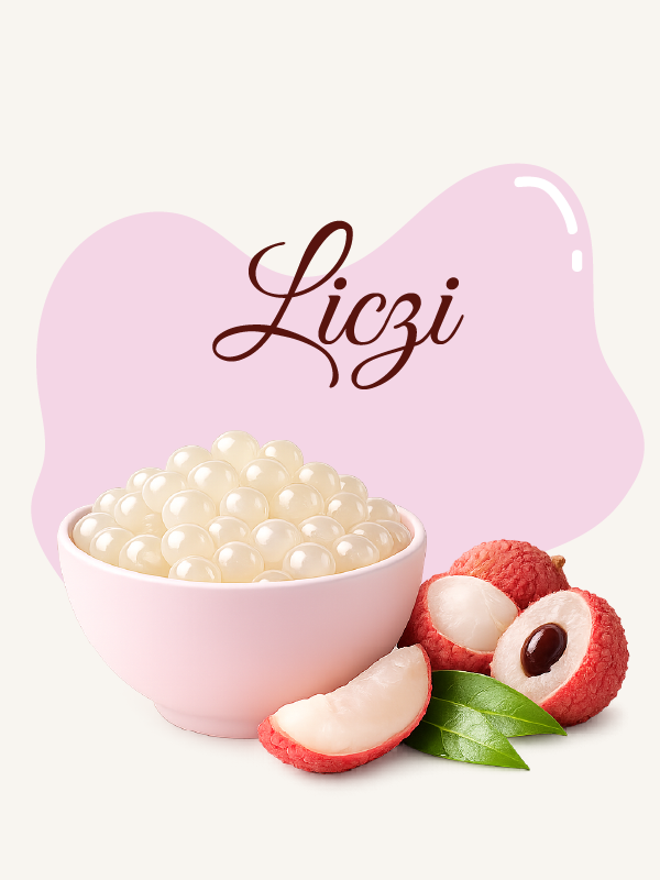 Popping boba o smaku liczi to jeden z najbardziej orzeźwiających dodatków do bubble tea. Delikatnie słodki, lekko kwiatowy smak liczi idealnie wpisuje się w wiosenne i letnie napoje, dodając im egzotycznego charakteru i wyjątkowego efektu „burst in mouth”.